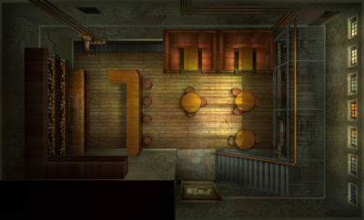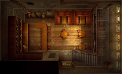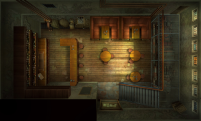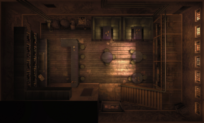 A tattered board near the entrance boasts notes, bounties, and news for those in the know, while private booths offer refuge for the VIP shady—groups who value privacy and purpose. Here, the loud and boisterous share space with those who never speak a word, each visitor disappearing into the bar’s smoky, sketchy den, blending into the hum of a place where nothing is ever as straight and narrow as it seems.